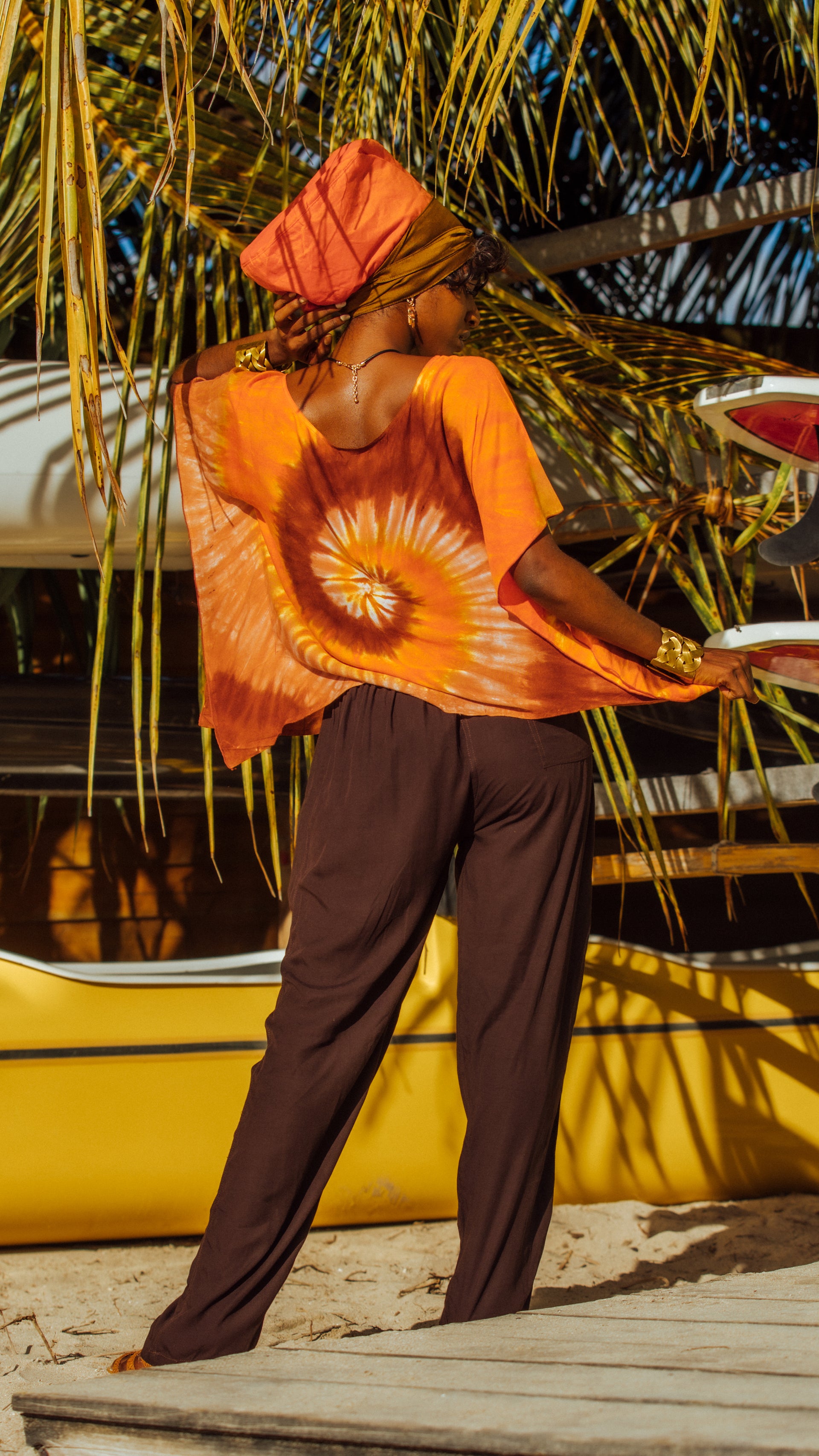 Coupe large et matière fluide ce pantalon est muni d'un élastique à la taille ce qui lui permet de s'ajuster à un grand nombre de silhouettes.