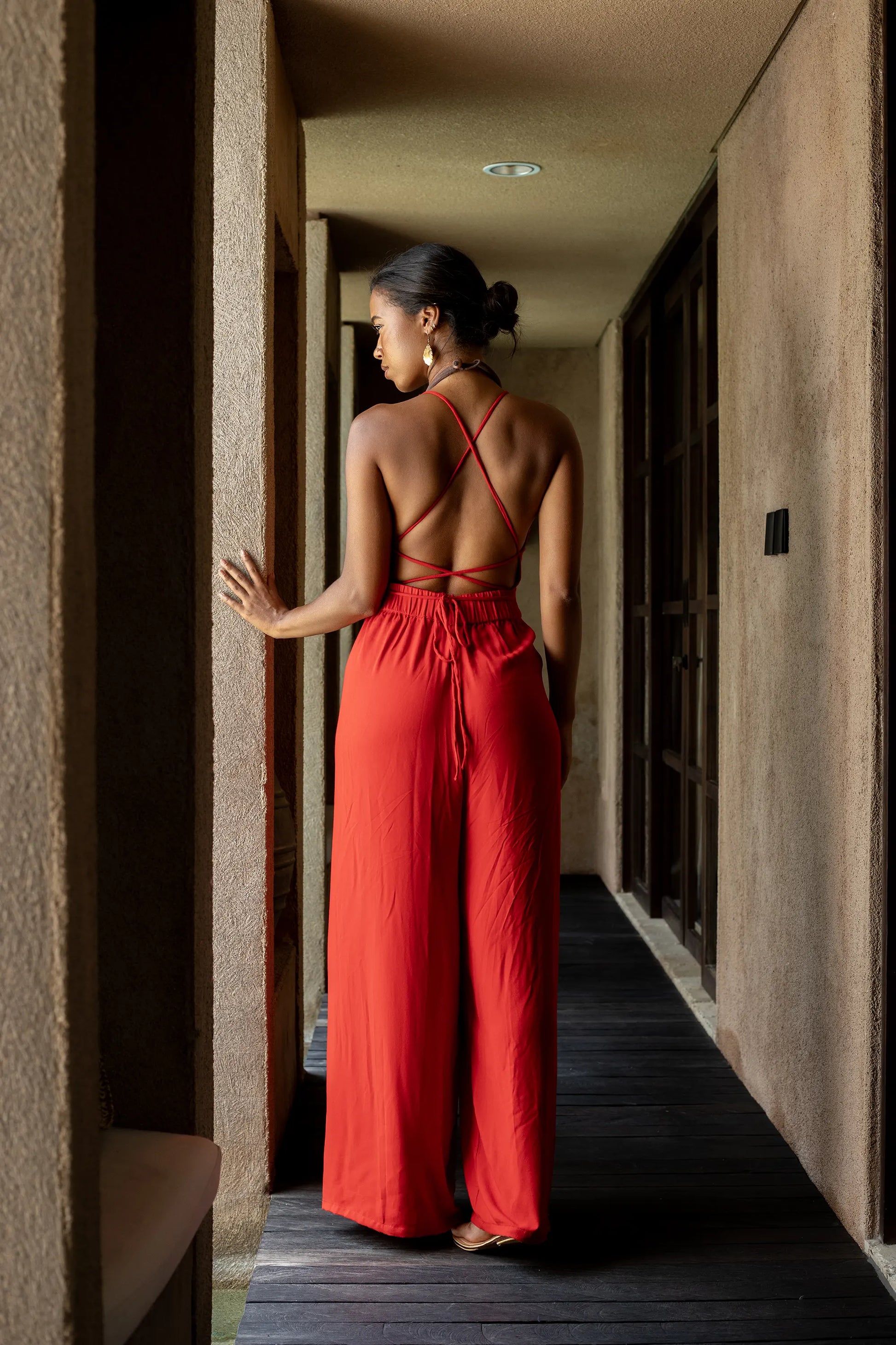 Son détail distinctif réside dans les fentes latérales sur chaque jambe, offrant mouvement gracieux et touche de sensualité à chaque pas. Polyvalente et chic, la Combinaison TRACY est idéale pour les cocktails, les soirées élégantes ou les célébrations estivales, conjuguant avec brio style et confort.